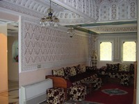 L'hôtel Akabar dispose de 50 chambres sur 4 étages. Il est situé au quartier de l'Hivernage faisant partie de guéliz, construit en 2002. L'hôtel fait également restaurant. Il est situé à 1 4000 mètres de la place Jemaa el Fna. Ce n'est pas un hôtel avec animations. Le prix d'une chambre est un peu moins de 400 dirhams (40 euros). Les lits sont identiques das toutes les chambres. Dans chacune d'entre elles il y a la télévision, la climatisation, une salle de bains, une douche, un petit balcon privatif, le chauffage, un fer à repasser, ldu inge de maison, des serviettes, toilettes. Le wi-fi se trouve dans le salon (photo 2) considéré comme bar-salon mais il est désormais possible de l'avoir dans les chambres. Les chambres sont faites tous les jours. Pour les serviettes il faut les mettre par terre si elles sont à laver. Sa proximité avec le centre est intéressante. Sa situation fait que l'hôtel est plus calme donc moins de souci pour dormir sauf la température est trop élevée. La réception est ouverte 24h/24 comme la plupart des hôtels, ce qui laisse la possibilité de rentrer à l'heure où l'on veut, étant entendu que la clé doit rester à l'hôtel. Le petit-déjeuner peut être servi dans les chambres. Comme dans tous les hôtels de Marrakech, il est possible de se faire réveiller si l'on doit prendre un avion car l'avion n'attend personne. Il est possible de louer une voiture à partir de cet hôtel mais généralement tous les hôtels proposent ce service. Le dernier jour, la chambre doit être libérée à midi. | ||||