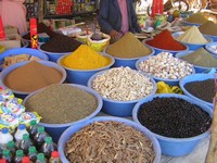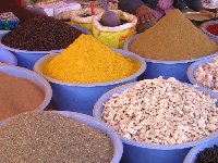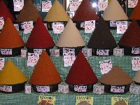 Sur tous les marchés des petites villes comme dans les souks, comm au Mellah, les épices sont au rendez-vous. Ils sont, la plupart du temps, présentés en vrac comme ici sur les photos. Alors que ce soit à Agadir, Marrakech, Casablanca ou bien dans les souks des petites villes leur présentation est la même. Pas d'emballages, et tout cela se fait à l'air libre. Rien à voir avec les précautions d'hygiène comme en France ou dans les pays européens. Pour autant il n'y a pas plus de malades qu'ailleurs, à croire donc que l'excès en tout est un défaut. Ils sont simplement immunisés contre les microbes et cela ressemble toujours aux années 50 en France ou la machine à laver, le réfrigérateur et autres n'existaient pas. Cela n'empêchait pas les populations de vivre et d'être aussi heureuses que de nos jours. Ces marchés ressemblent aussi aux marchés de France il y a 50 ans. Comme les autres pays ils évolueront simplement parce qu'il faut toujours avancer ! | ||||